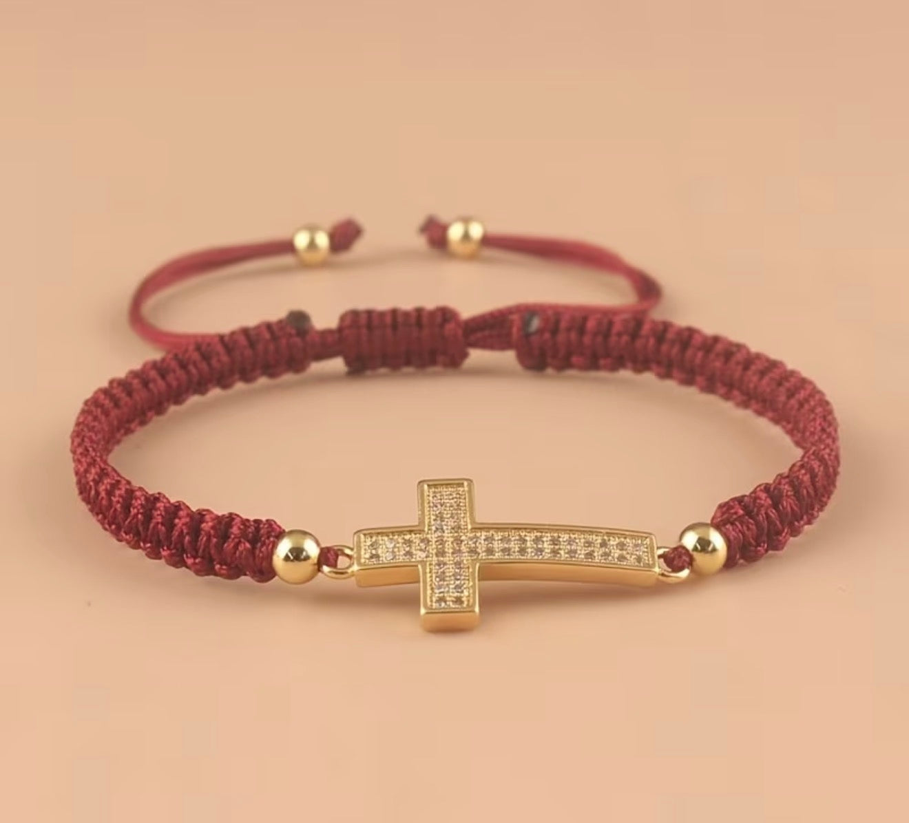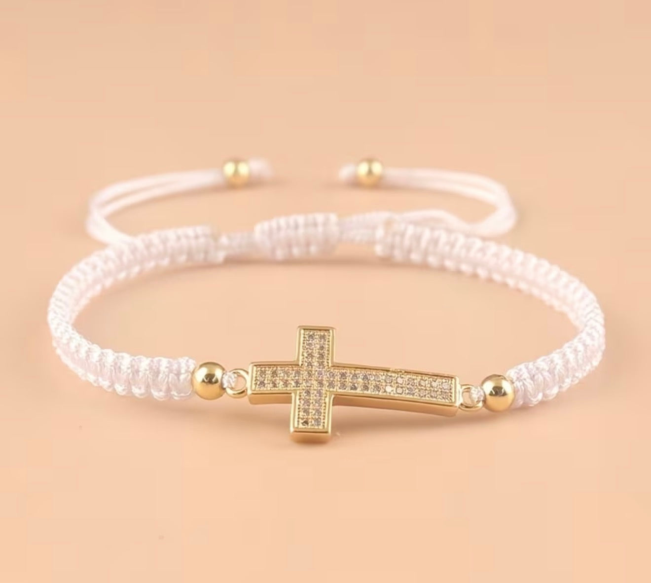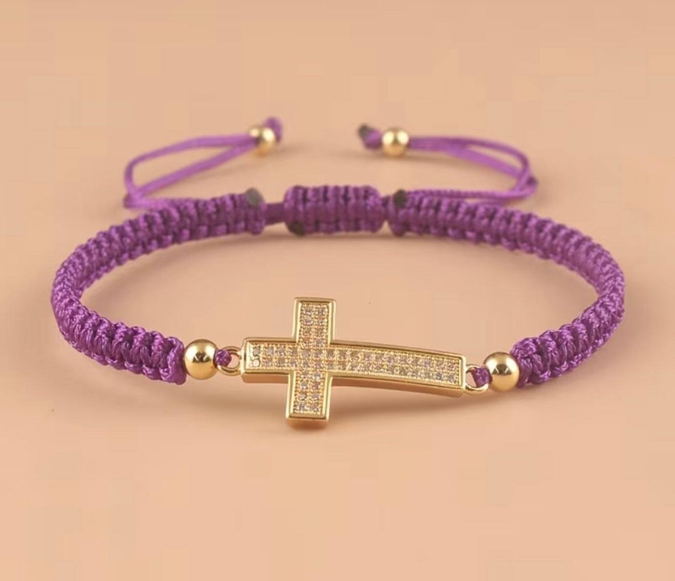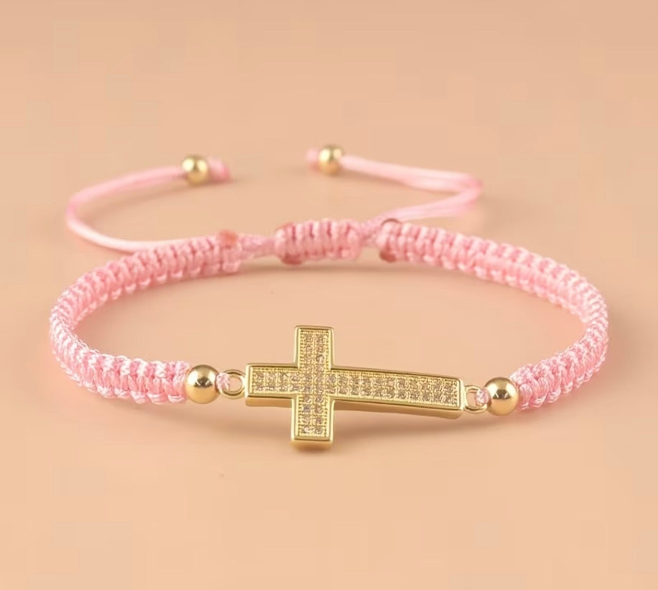 Un bracelet élégant et intemporel, orné d’une croix dorée sertie de strass scintillants. Son cordon tressé ajustable assure un confort parfait et s’adapte à tous les poignets. Disponible en plusieurs couleurs pour s’accorder à tous les styles.